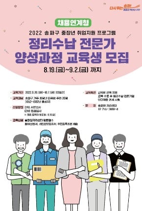 송파구(구청장 서강석)가 재취업을 희망하는 중장년층을 지원하기 위해 채용연계형 교육 프로그램을 운영한다고 밝혔다.