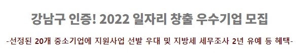 강남구 인증! 2022 일자리 창출 우수기업 모집