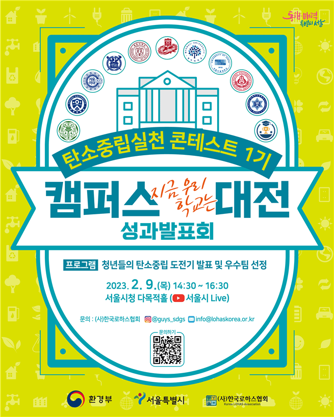 서울시는 9일(목) 14시 30분 서울시청 8층 다목적홀에서 청년 300명과 함께 ‘탄소중립 실천 콘테스트 캠퍼스 대전, 지금 우리학교는’ 행사를 개최한다고 밝혔다.