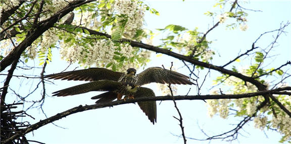 ○ 2016년 남산에서 멸종위기 야생생물 Ⅱ급인 새매와 천연기념물 솔부엉이의 번식을 시작으로 2018년에는 멸종위기 Ⅱ급이면서 천연기념물인 붉은배새매의 번식을 관찰했고 2019년 번식기에 멸종위기 야생생물 Ⅱ급인 새호리기의 짝짓기하는 모습을 포착했다.
